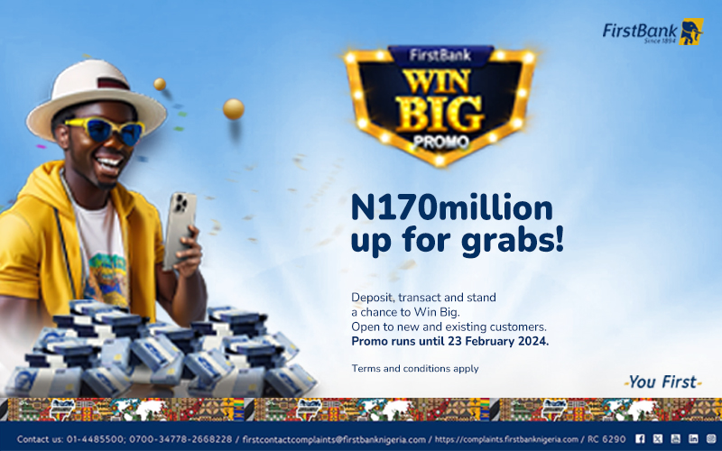 FirstBank, Nigerias premier financial institution and leading financial inclusion services provider, has launched the Win Big promo to reward and delight its valued customers. The four-month...